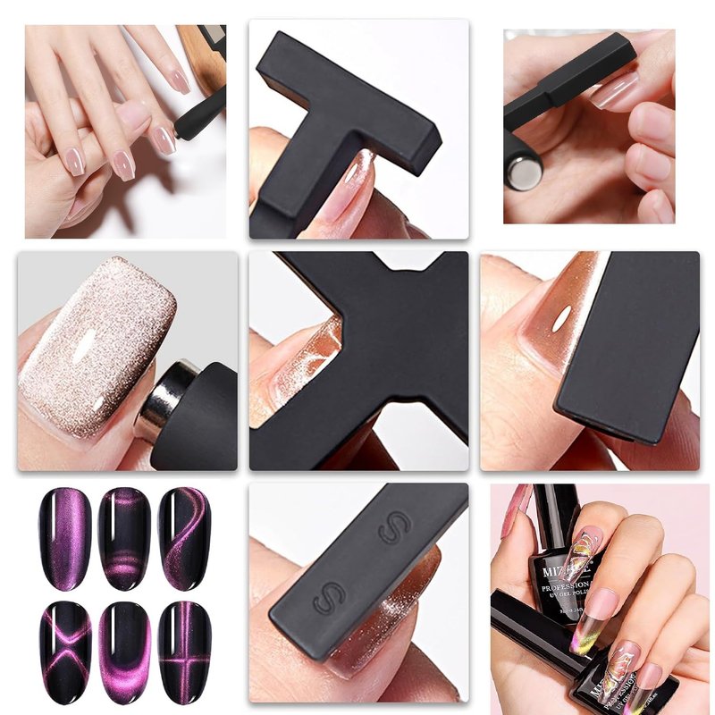 - 【Usage Guide】Achieve captivating cat's eye effects in three simple steps: Step 1: Apply cat's eye gel nail polish. Step 2: Position the magnet near the nail for 10-15 seconds, ensuring one side of the magnet faces the nail without touching its surface. Step 3: Immediately cure under UV light for 2 minutes or LED light for 60 seconds to set the design.