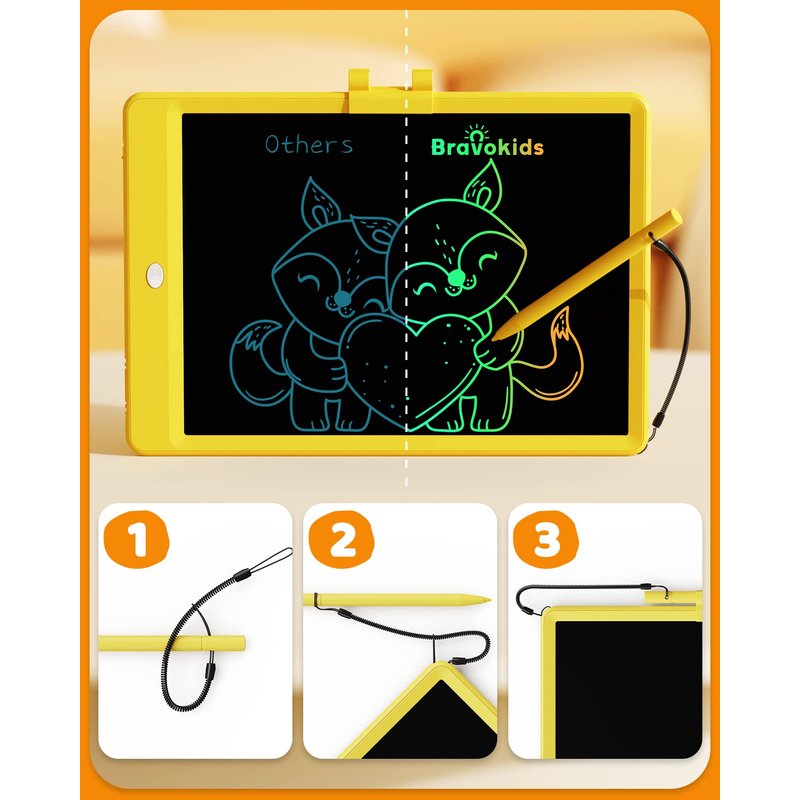 Bravokids LCD Writing Tablet for 3-8 Year Old Girls and Boys - 10 Inch Electronic Doodle Board Drawing Pad, Educational Birthday Gift for Kids and Toddlers (Yellow)