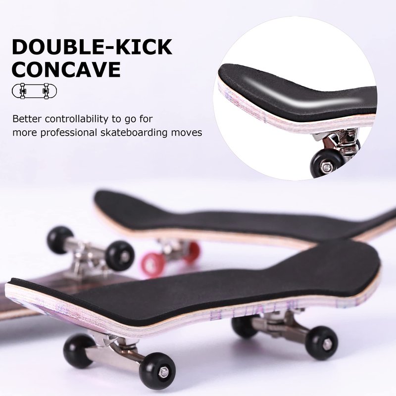 - DOUBLE-KICK CONCAVE: BRAVORD pro fingerboard is compatible with pro players and beginners. The double-kick concave design provides a structure and feels that is infinitely closer to a real-size skateboard and affords fingerboard players better controllability to go for more professional skateboarding moves.