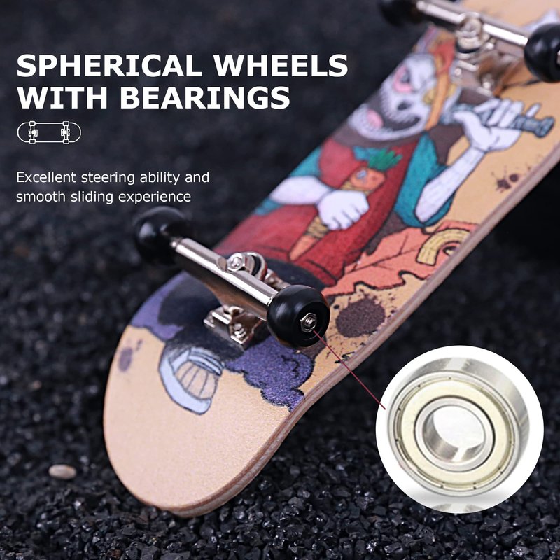 - SPHERICAL WHEELS WITH BEARINGS: BRAVORD mini skateboard comes with 4 spherical wheels made of high-density material and high-speed bearings. The spherical wheels provide excellent steering ability, meanwhile, the bearings afford a smooth sliding experience. Both functional accessories support fingerboard players to have better control while practicing.