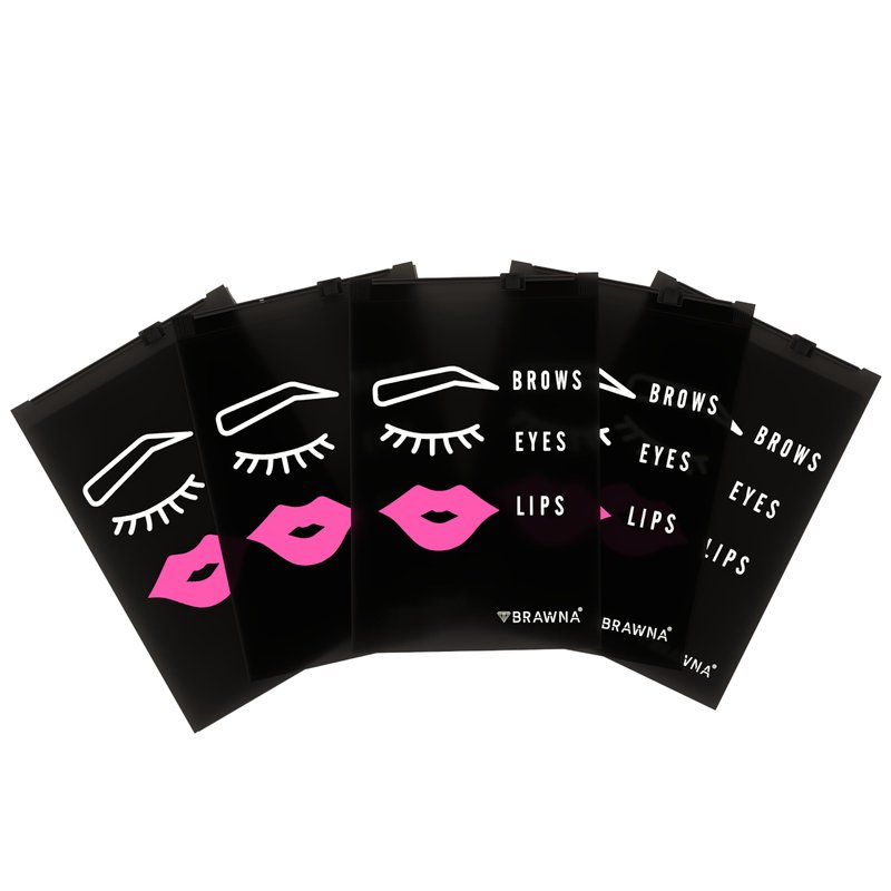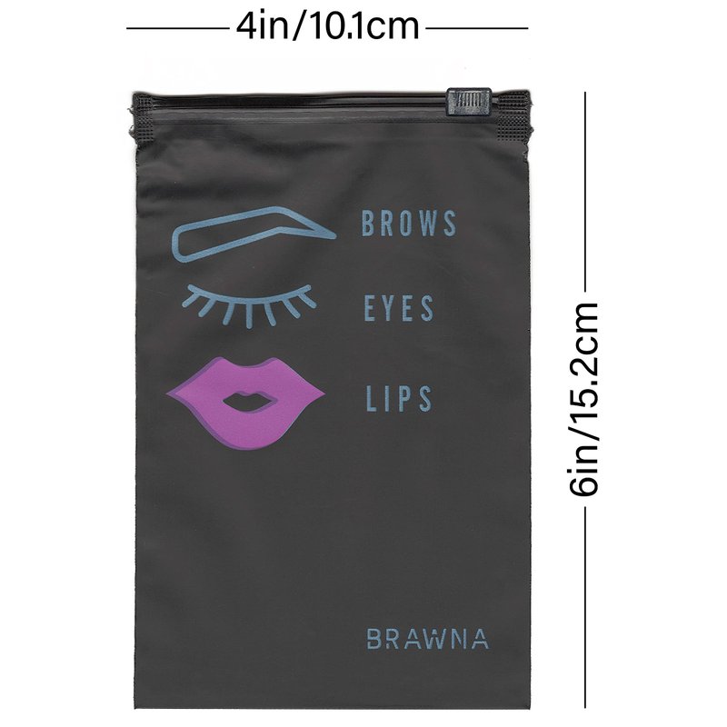 - ✔ VERSATILE USAGE: Each of our eyebrow aftercare bags are printed with cute brow, lips, and lash patterns, come with a very suitable size of 4x6 inches and have enough capacity that allow them to be used for storing eyelash extensions, lash thank you cards, lipsticks, makeup brushes, small accessories and more.