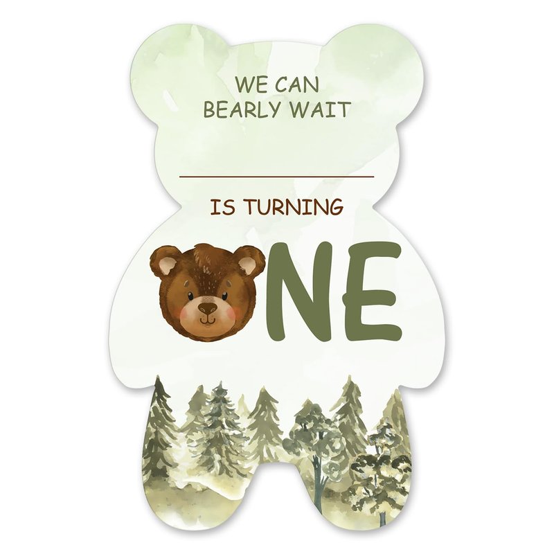 brayqu Bear Boy 1st Birthday Party Invitations Forest Bear First Birthday Party Bear Shaped Invitations Fill-in 1 Year Old Invites (20 Invitations with Envelopes)
