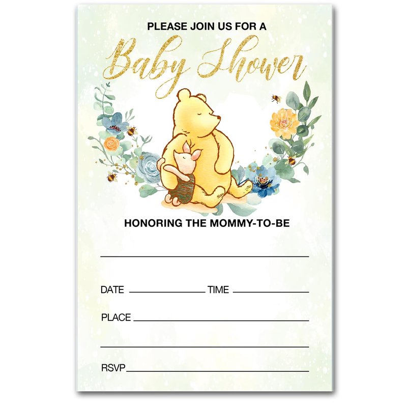 brayqu Winnie the Pooh Baby Shower Party Invitations Floral Pooh Bear Baby Shower Party Invites (20 Cards with Envelopes)