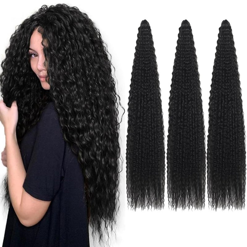 Brazilian Curly Braids Crochet Twist Hair 30inches 3Packs Afro Kinky Curly Braiding Hair Extensions Deep Curly Crochet Hair Synthetic Water Wave Braid Hair(30Inch,1B)