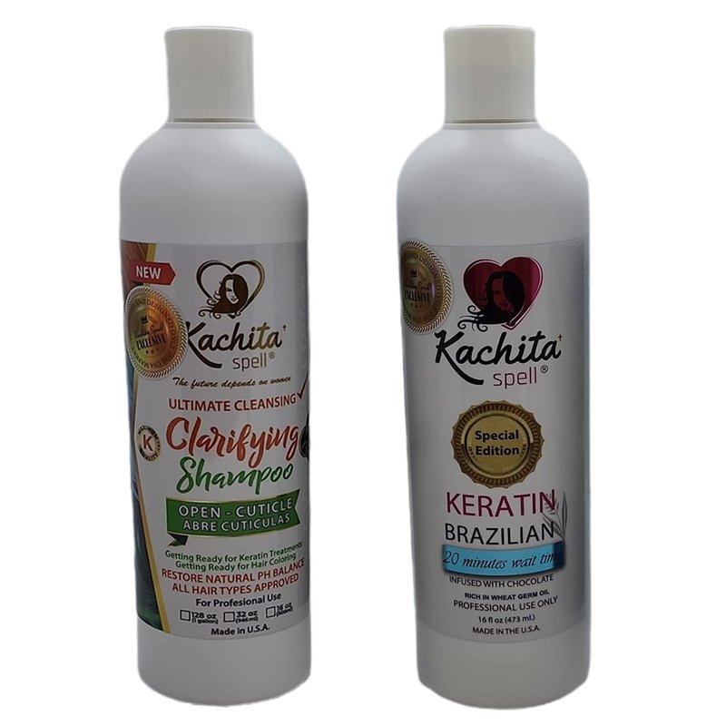 Brazilian Keratin Hair Blowout Treatment Kachita Spell Professional Results Straighten and Smooth Hair + Shampoo Clarify