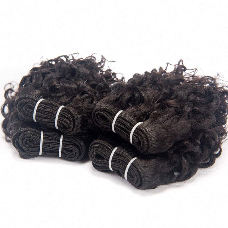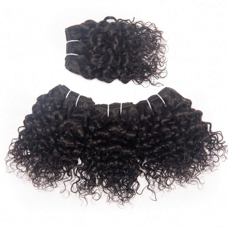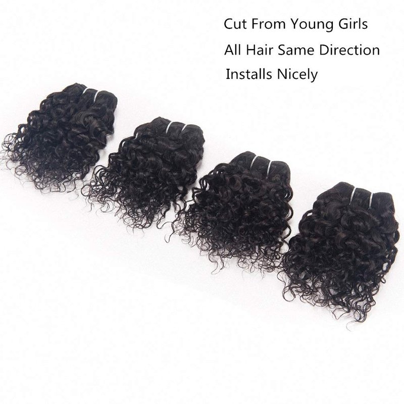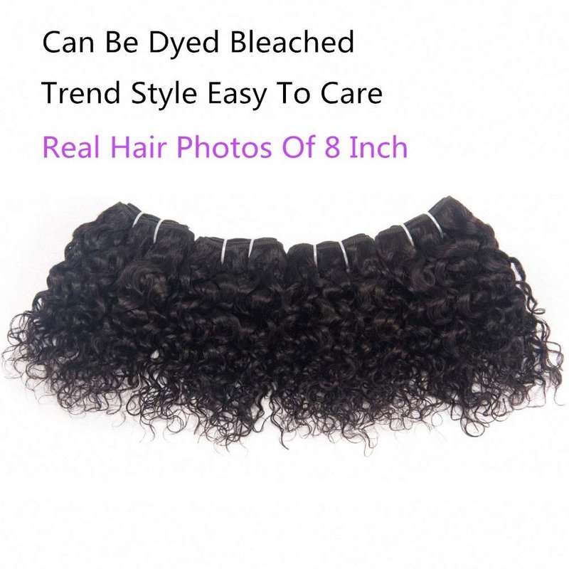 Brazilian Kinky Curly Human Hair Weave 4 Bundles 50g Jerry Curl 10A Grade 12 Inch 100% Unprocessed Raw Virgin Remy Hair Extensions Short Curly Human Hair Bundle Sew In Natural Black Color for Women
