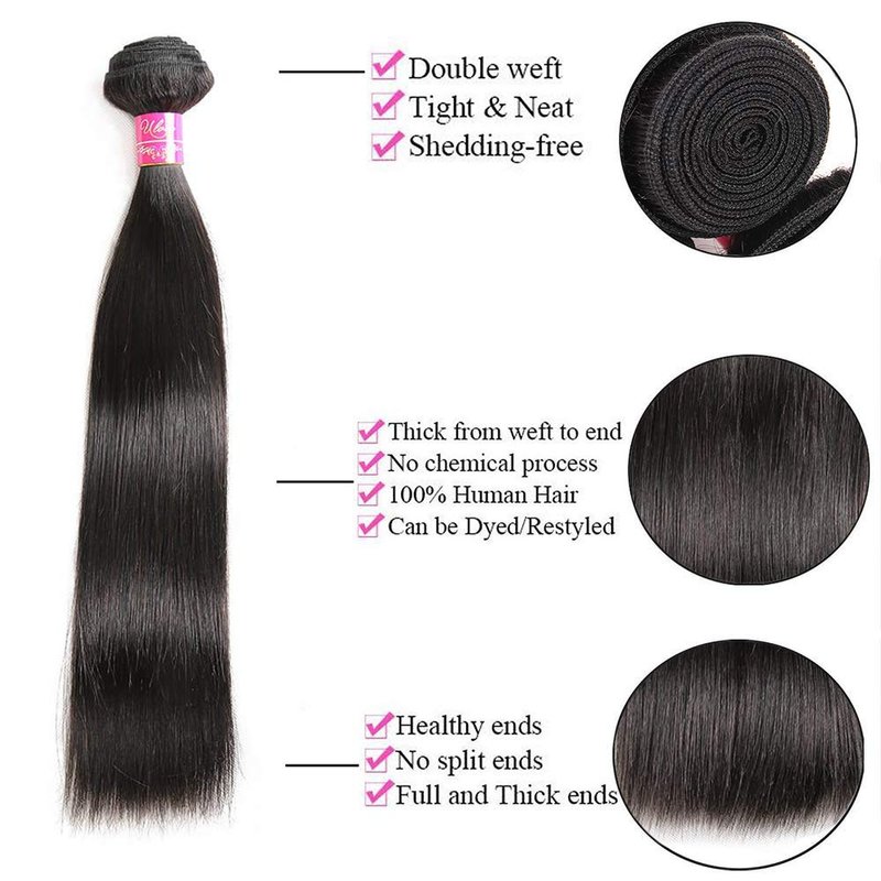 Brazilian Straight Bundles With Closure 3 Bundles Unprocessed Virgin Human Hair Bundles With Free Part Lace Closure Hair Extensions Natural Color (22 24 26+20", Free Part)