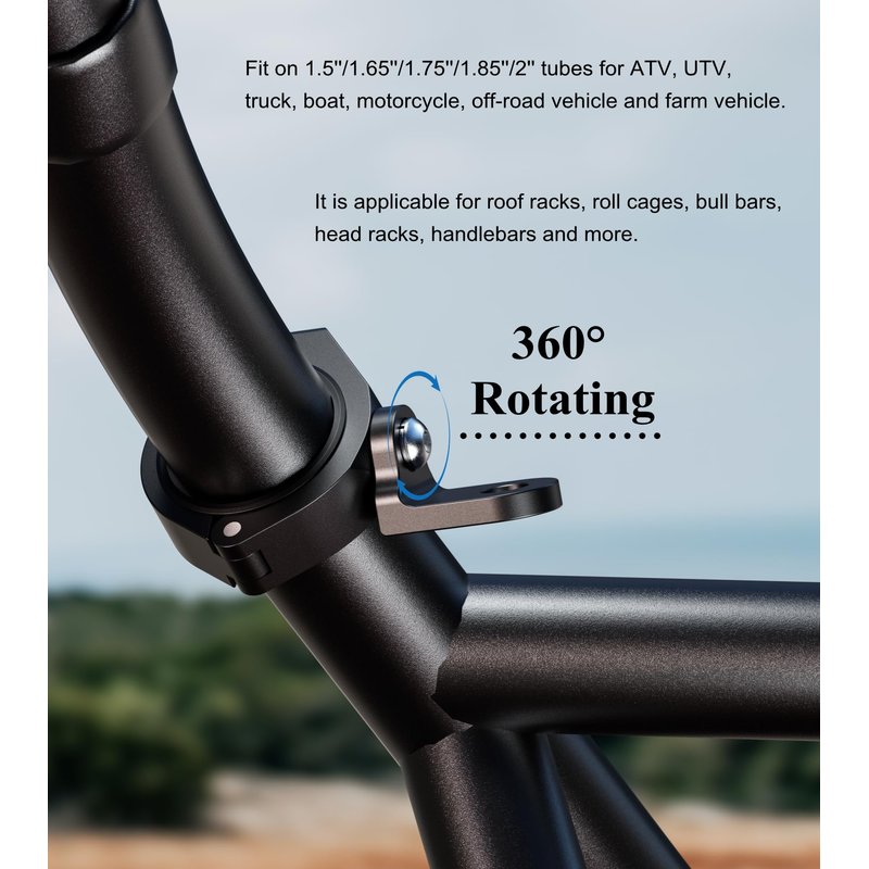 - Fit on 1.5''/1.65''/1.75''/1.85''/2'' tubes for ATV, UTV, truck, boat, motorcycle, off-road vehicle and farm vehicle. It is applicable for roof racks, roll cages, bull bars, head racks, roll bars, handlebars and more. Please Note: Before purchasing, please measure the diameter of the mounting rail to confirm whether this clamp mount fits your rail
