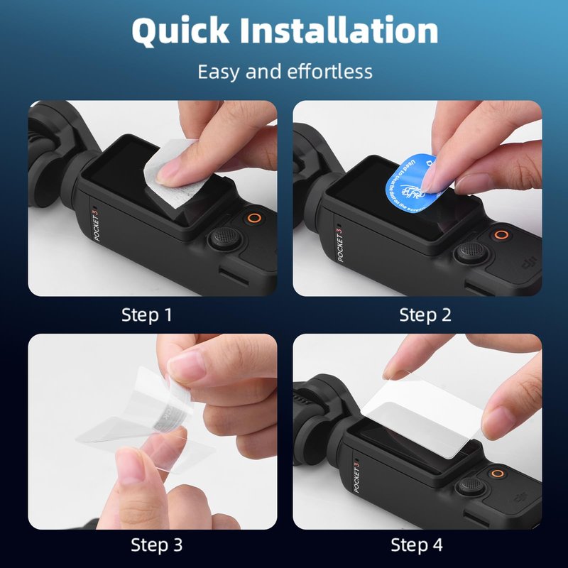 - POCKET 3 PROTECTIVE FILM - 99.99% transparency maintains the visual quality of the camera screen, reduces eye fatigue, and presents the most realistic screen content and color clarity.