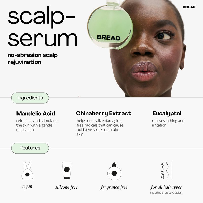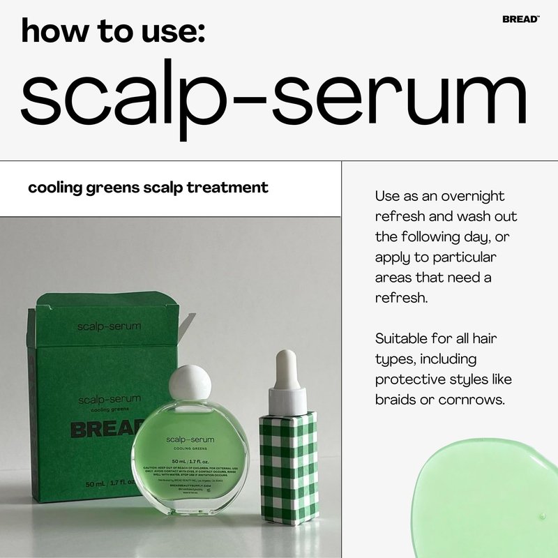 Bread BEAUTY SUPPLY scalp-serum: Cooling Greens Exfoliating Scalp Treatment | All Hair Types | Colour Safe, Silicone Free, Cruelty-Free, Vegan | 1.7 oz 50 mL.