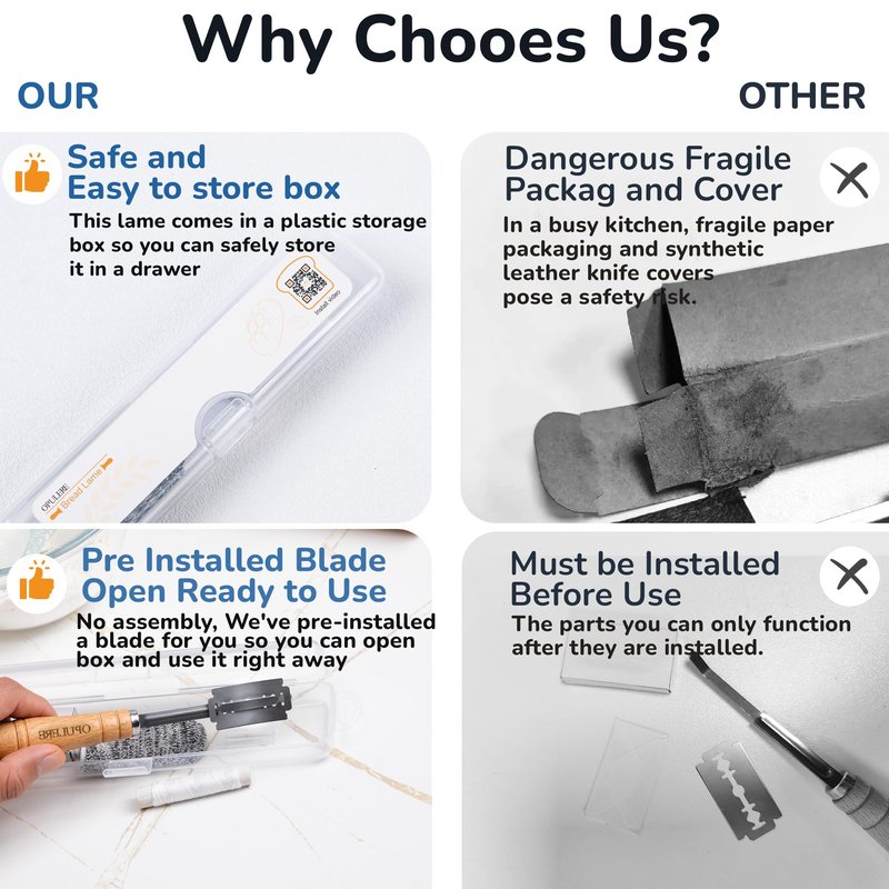 - Easy and Safe Storage: Store your sourdough scoring tool in the dedicated sourdough tools box. It’s easy to clean and provides safe, organized storage, protecting you and your family from potential injuries caused by the blades