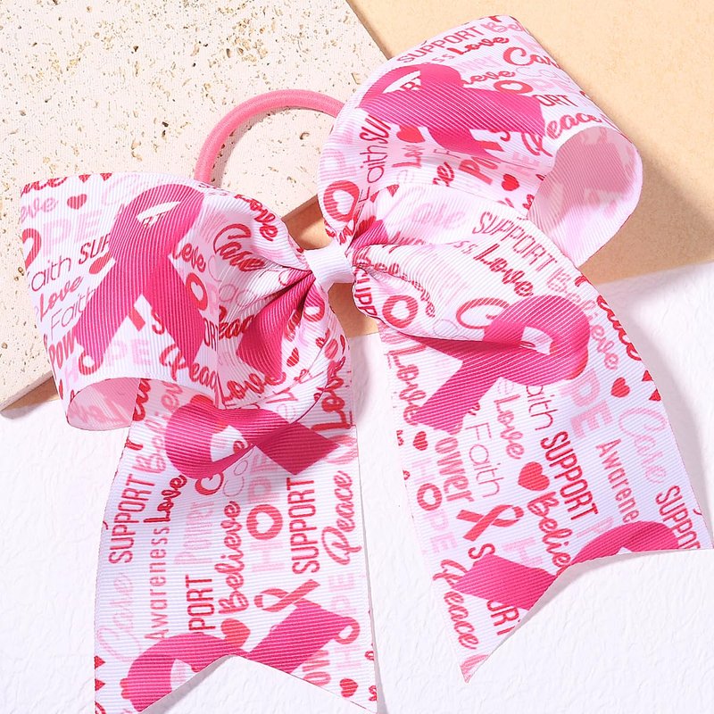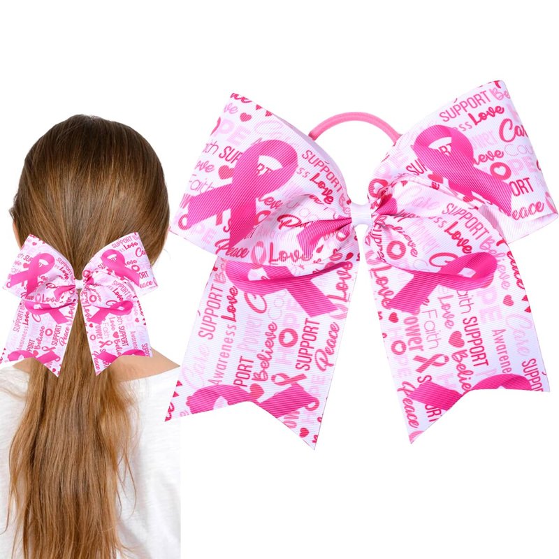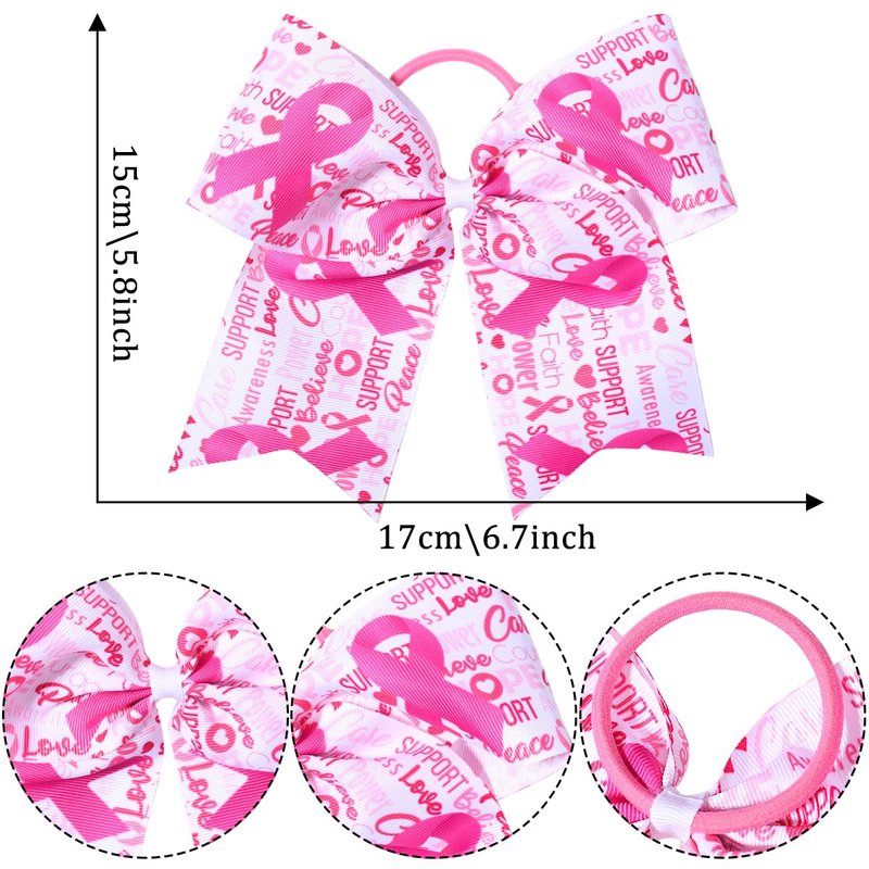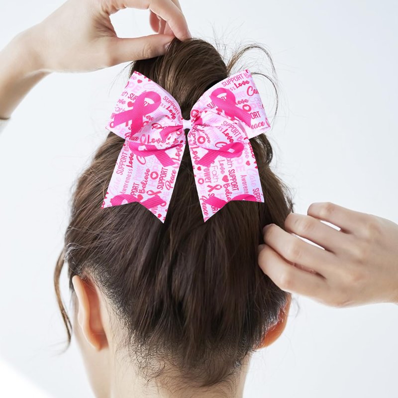 - More Application: Our large cheer hair bows are printed with letters and pink ribbon patterns. These bows are suitable for breast cancer awareness party, celebration, work or school party, breast cancer awareness themed photo booth and other kinds of gatherings. You can show your solidarity, love, and care for those affected by this disease.