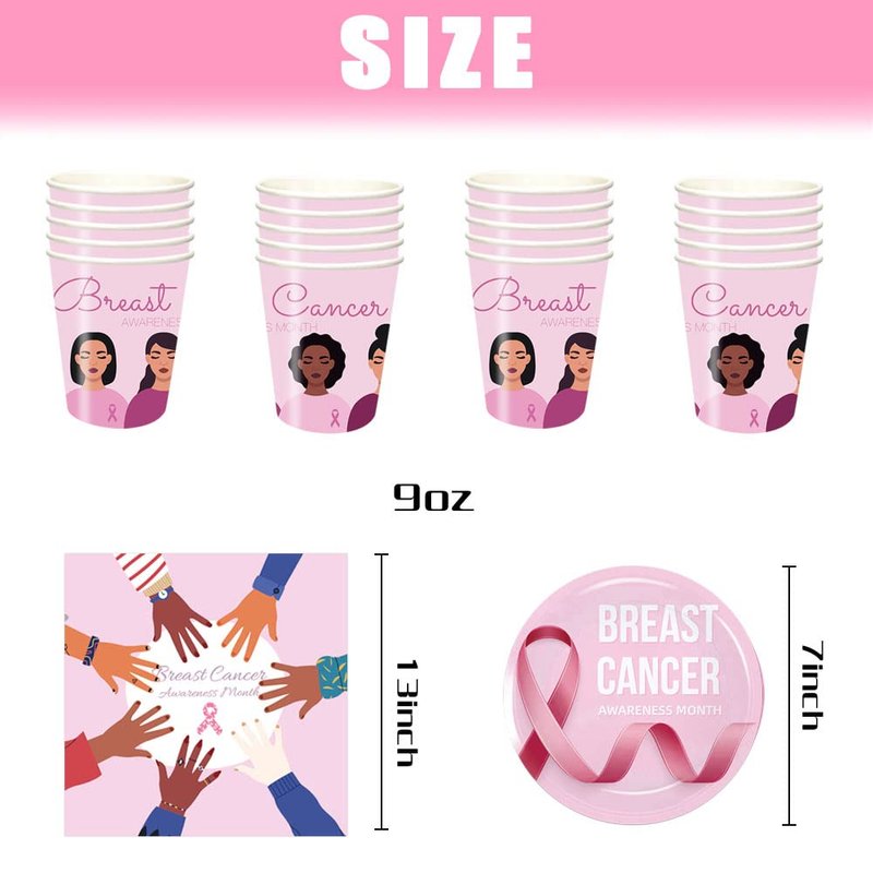 - PACKAGE INCLUDING: 20pcs cups, 20pcs plates, 20pcs napkins. Our complete set of Breast Cancer party supplies will add amazing to you, your family and friends.
