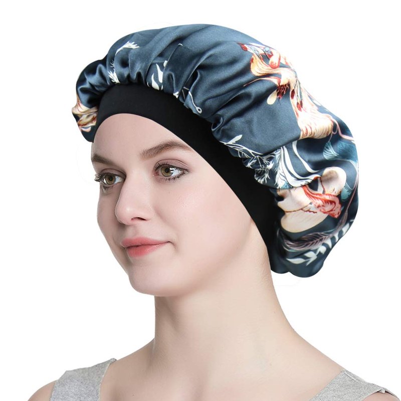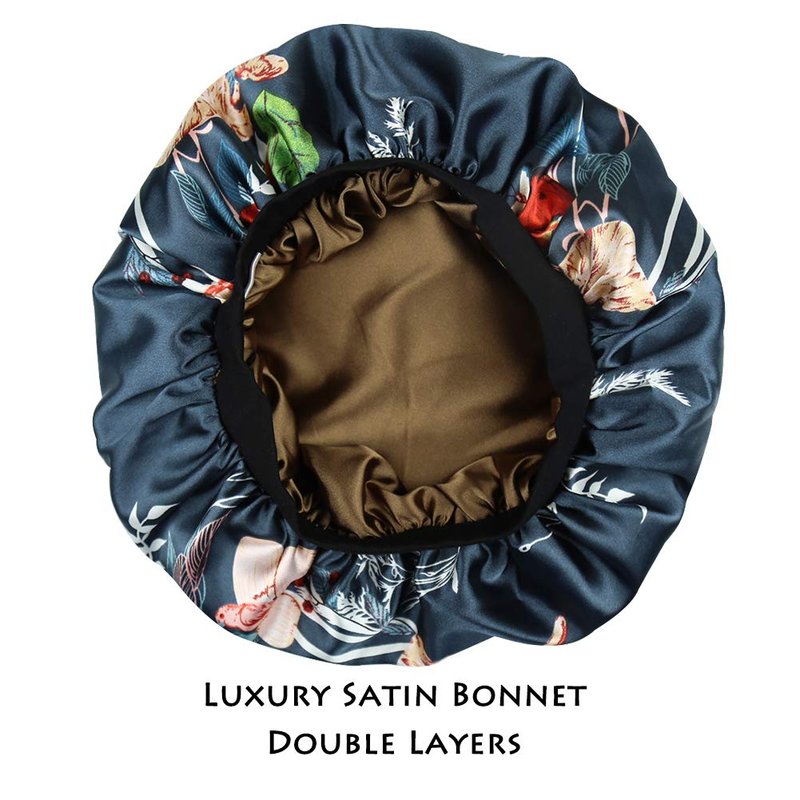 - DOUBLE-LAYERED SILKY SATIN. Reversible and Versatile. This night cap reduces friction unlike previous single-layered satin cap having rough lining without satin lined.Two options for you.You can wear fashionable printed satin inside or simple dyed satin inside.Both layers are silky satin fabric.This product can be worn not only during sleep,but also for makeup, bathing,or even doing the housework.It is really convenient in daily use.
