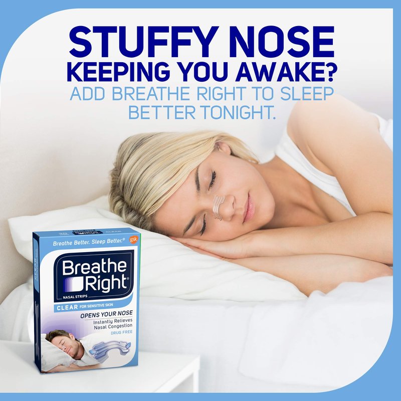 Breathe Right Nasal Strips to Stop Snoring, Drug-Free, Clear for Sensitive Skin, 30 count (Pack of 2) ( Pack May Vary )