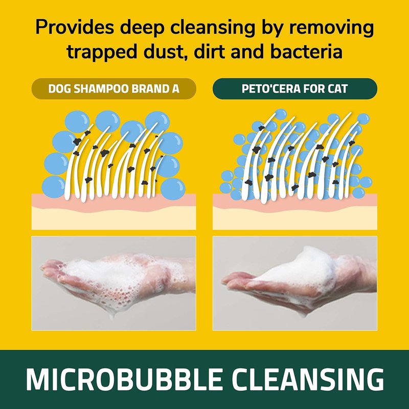 - TEARLESS KITTEN AND CAT SHAMPOO ▶ PetO’Cera cat shampoo is formulated exclusively for cats to deliver advanced moisture protection by soothing and moisturizing dry feline skin. Made with safe ingredients, our cat shampoo effectively works to tackle odors and maintain your pet’s coat clean and fluffy.