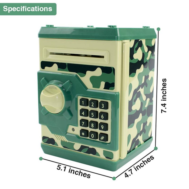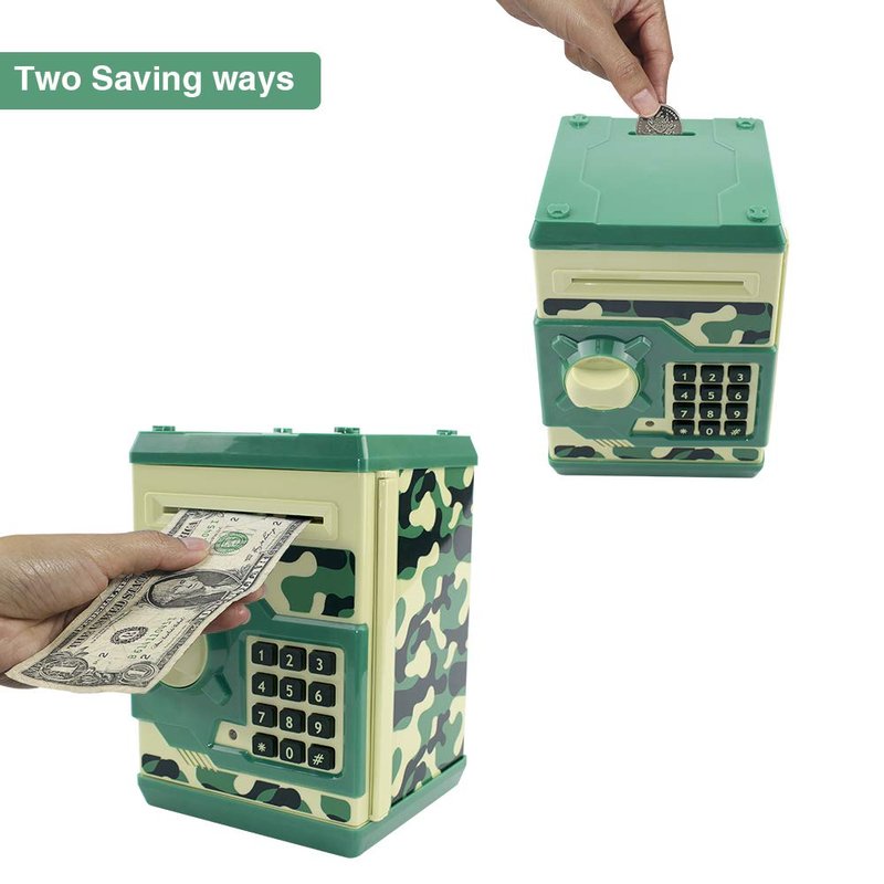 - 【Best Gift for Kids】This piggy bank can help children save money in a planned way. It can Save Cash/Coins with Electronic Code.It can store about 600 pieces of Coins or 100 pieces of paper money.Most importantly,It can teach children to form a habit of Saving money from an early age. This is a toy that is very good for children's Physical and Mental growth.
