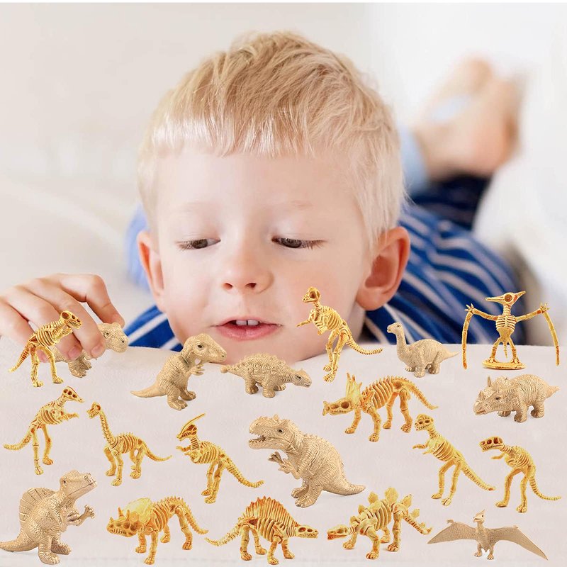 - WHAT YOU GET - 20PCS Small Dinosaur Model and Assemble Dinosaur Bones(T-Rex,Velociraptor,Triceratops,Tyrannosaurus,Pterodactyl,Dilophosaurus,Carnotaurus,Stygimoloch etc)