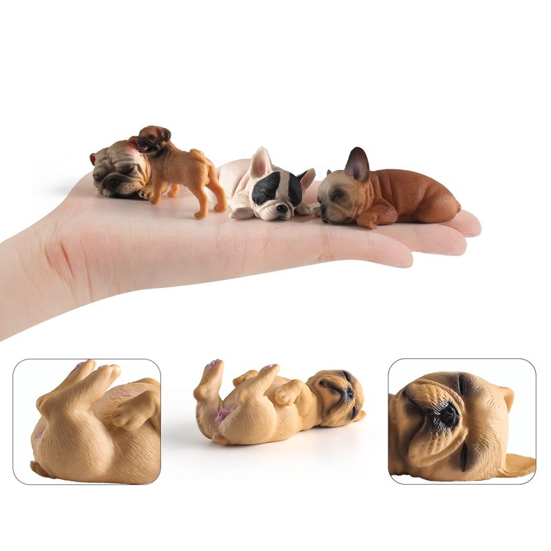 BRETOYIN Mini Bulldogs Figurines 5PCS Puppy Party Decorations for Girls Sleeping Dog Figurines for Kids Dogs Figures Bulldog Toys Dollhouse Christmas Birthday Gift 2-3.5 Inch