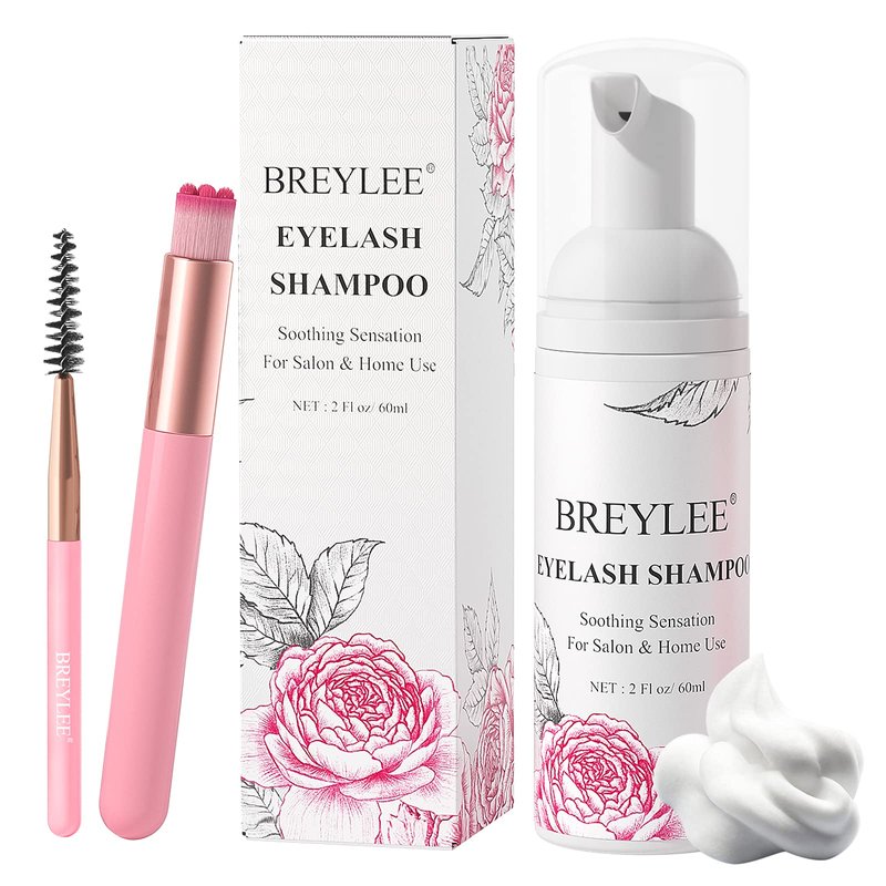 BREYLEE Eyelash Extension Cleanser,Eyelash Extension Shampoo, Eyelash Extension Foam & Brushes Eyelid Cleanser for Makeup Remover Paraben & Sulfate Free for Salon and Home Use