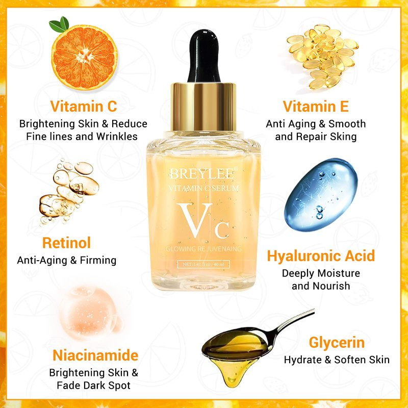 BREYLEE Vitamin C Serum for Face & Eye (1.4 oz) for Brightening Skin,Dark Spot Remover,Reduce Wrinkle,Anti Aging,Moisturizer with Hyaluronic Acid,Vitamin E,Retinol