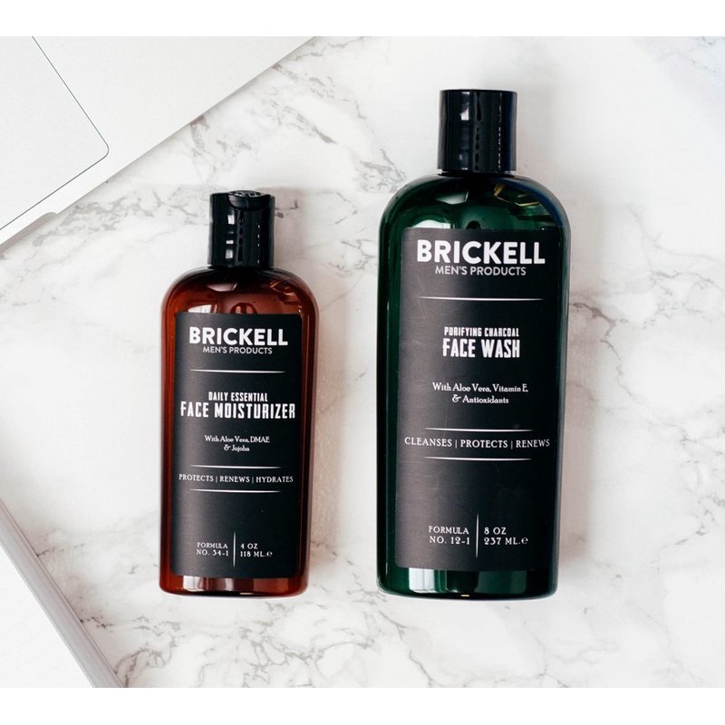 Brickell Men's Daily Essential Face Care Routine II, Purifying Charcoal Face Wash and Daily Essential Face Moisturizer, Natural and Organic, Men's Skin Care Gift Set, Scented
