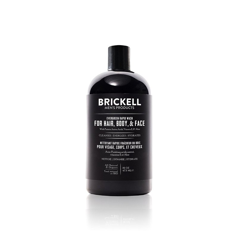 Brickell Men's Rapid Wash, Natural and Organic 3 in 1 Body Wash Gel for Men, 16 Ounce, Evergreen Scent