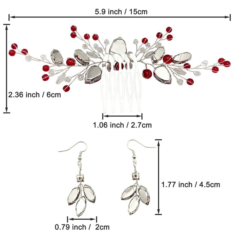 - 【Size】- The bride hair piece is about 5.51" x 2.36", enough length for wearing it over the top, side, back, across forehead or weave throughout most hairstyle; the matching earring is about 1.77" in length