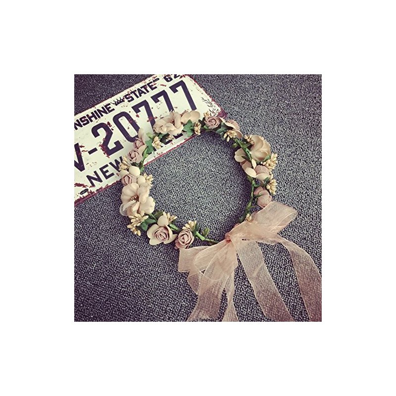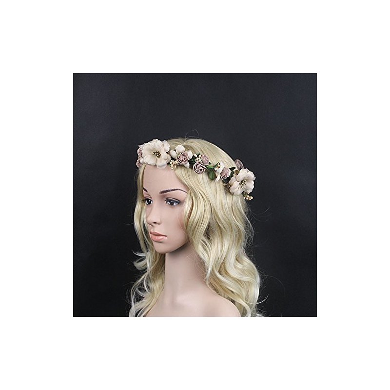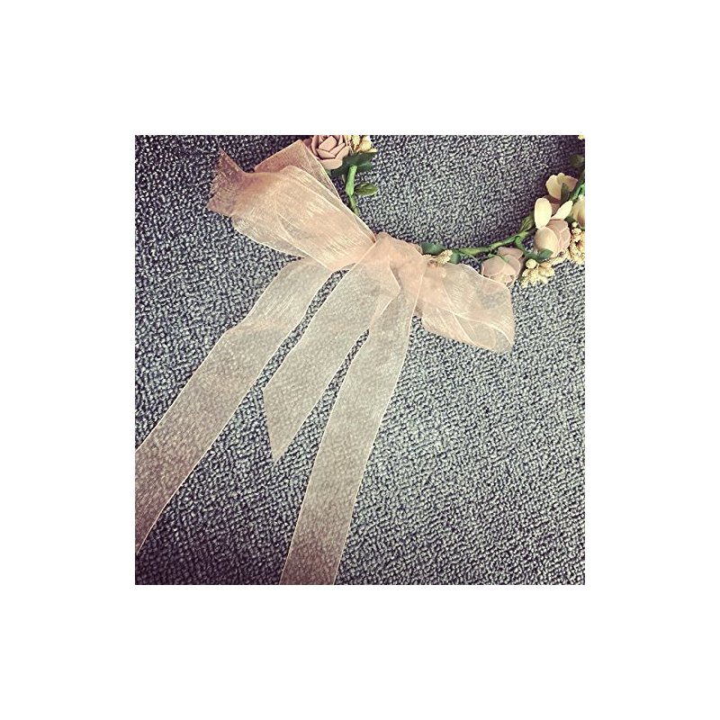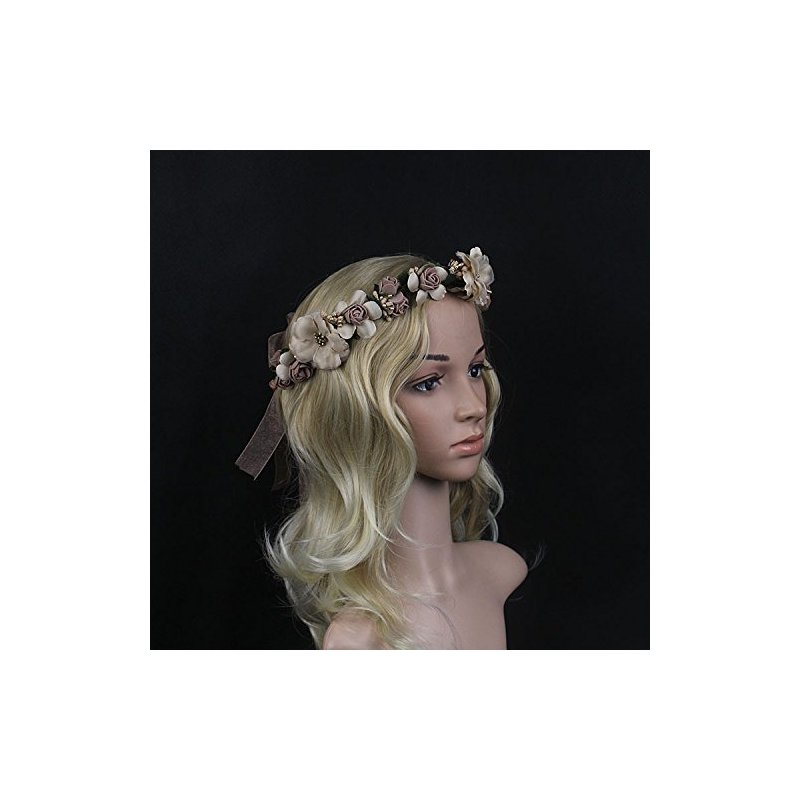 Bridal Flower Garland Artfen Headband Flower Crown Hair Wreath Halo Adjustable Ribbon Wedding Festivals Red Bean Paste
