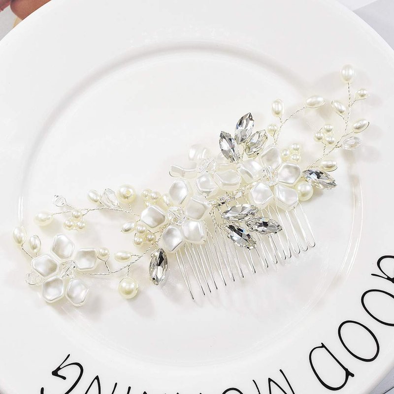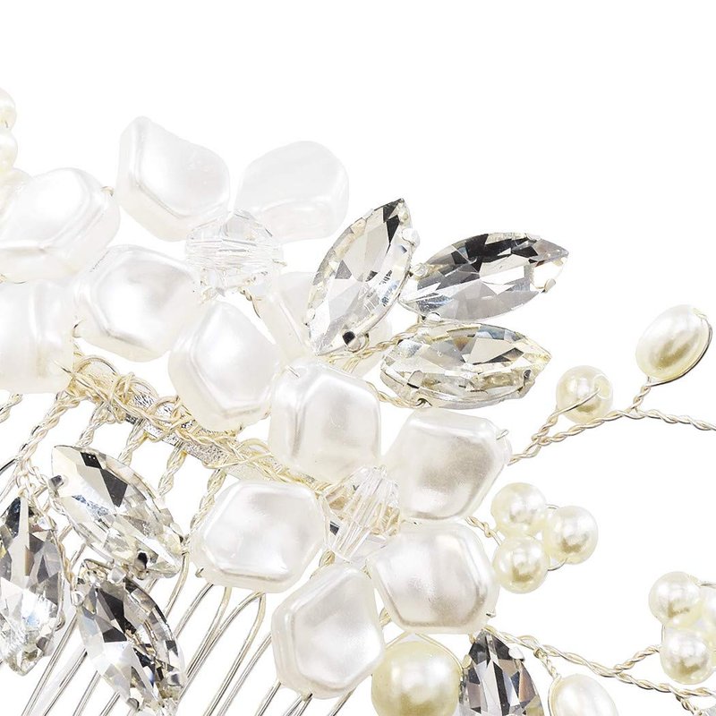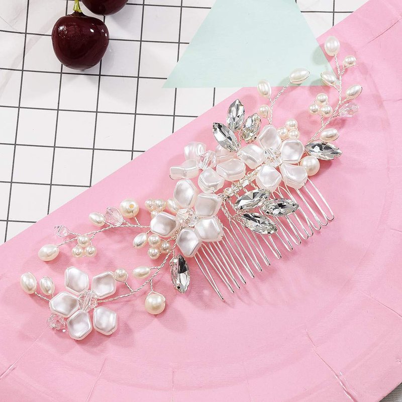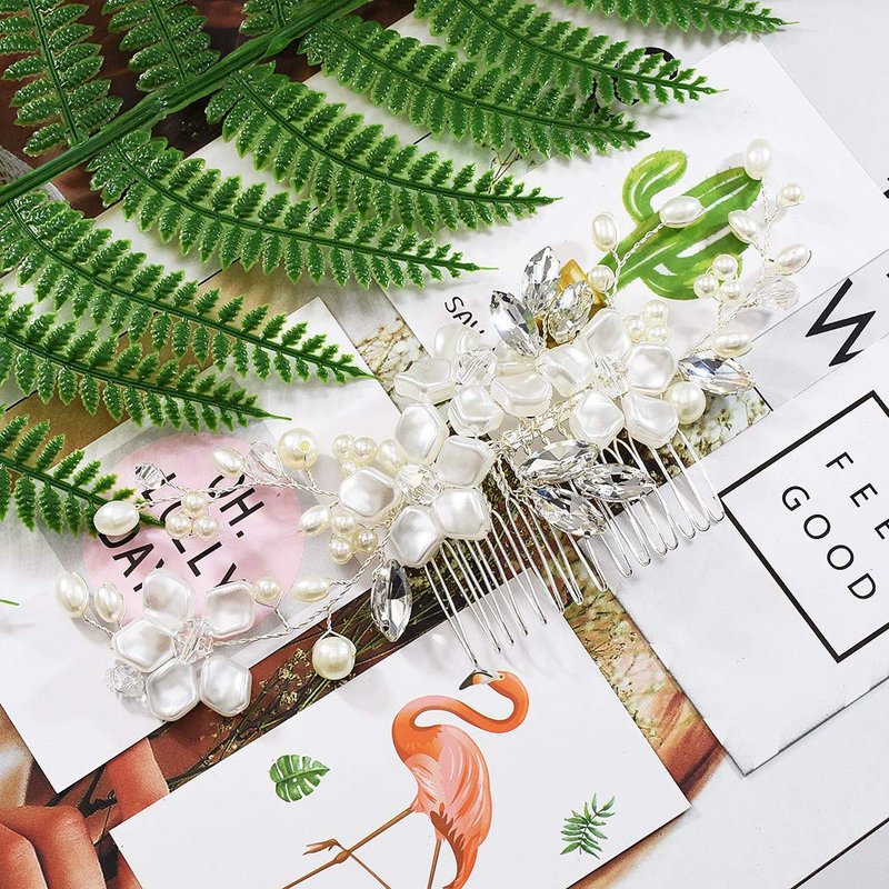 Bridal Hair Comb Flower Wedding Hair Piece Pearl Rhinestones Silver Hair Pieces Masquerade Hair Accessories for Brides Women Girls