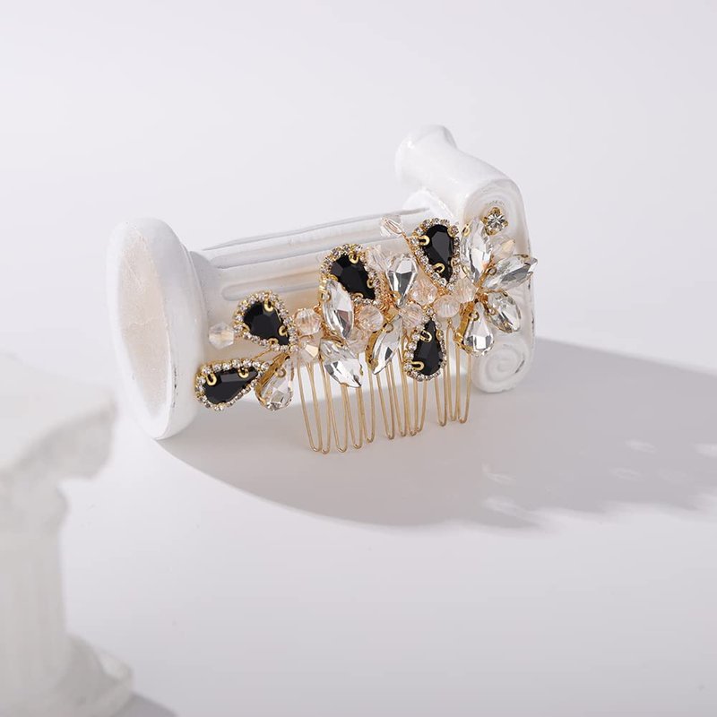 Bridal Hair Comb Rhinestone Teardrop Hair Comb for Bride Beaded Cute Hair Pieces Multi-Color (black, GOLD)