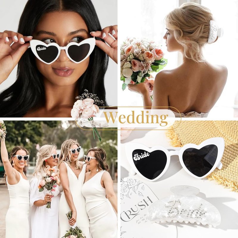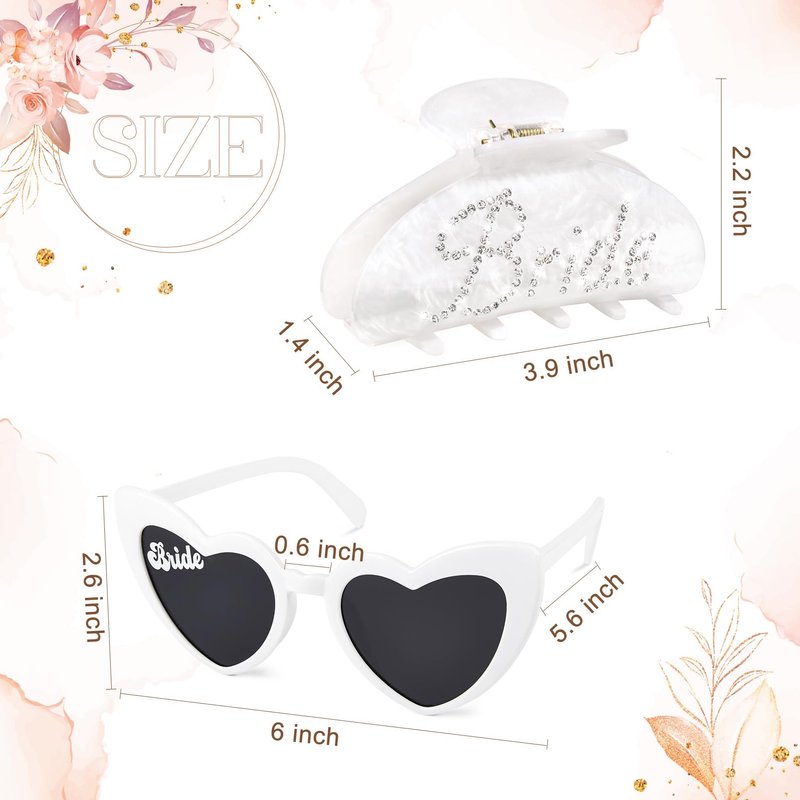 - 💖Bride Gifts Set -- This bride gift set includes two elegant items:a pair of bride sunglasses, and a white bride claw clip. These two distinct pieces make it the perfect companion for any bride on her special day