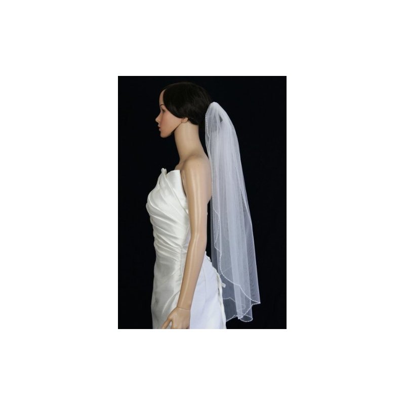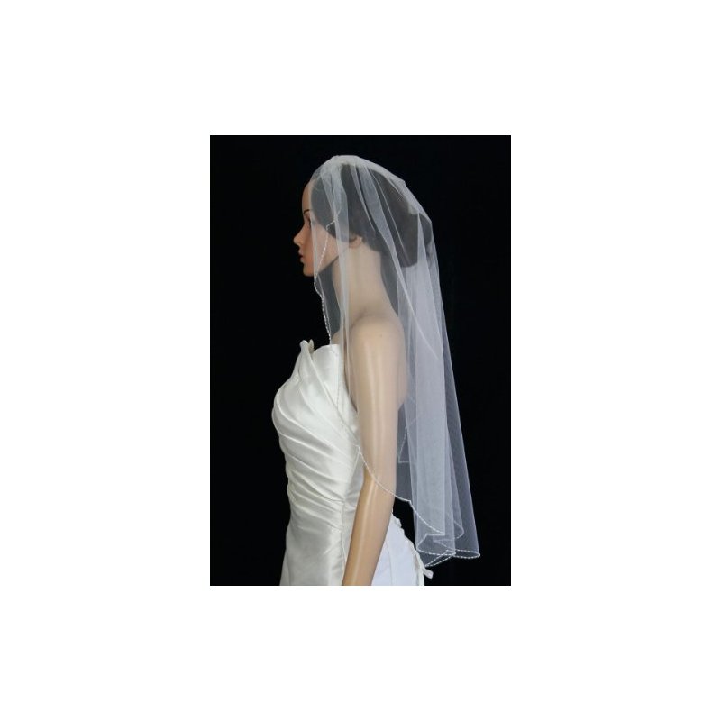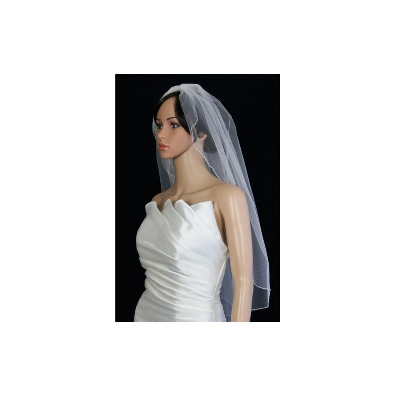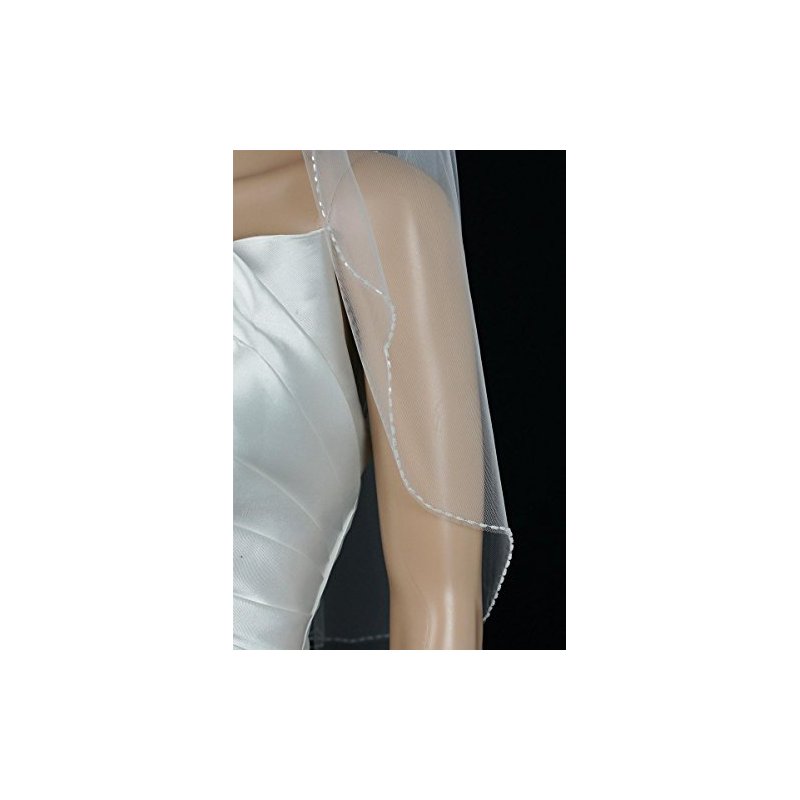 Gorgeous brand new 1 Tier Fingertip Length veil with 72in width in fullness. The edge is beautifully finished with Scallop beaded Edge Trimmed with white seed beads. .The beading is completely hand crafted. The material is soft and flowing, allowing the veil to drape perfectly.The veil has Silver wire comb attached - wire combs are more pliable and versatile, it can be contoured to your head shape and can be pinned if necessary (as opposed to plastic, which is thicker, inflexible and more cumbersome). Due to variations in computer screen settings, the color may appear differently than the actual color of the veil.Please order our color swatch so you can be confident that you are getting the veil color which matches your dress.