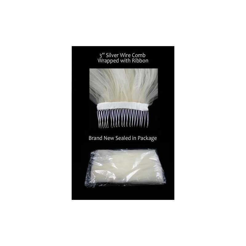 - Comb: Wire comb wrapped in soft ribbon and sewn on. Combs are wrapped in ribbon and sewn on, not glued. Wire comb is more pliable to contour to your head, plastic comb is not. To properly wear your veil, put the ribbon side down, ribbon side should touch your hair