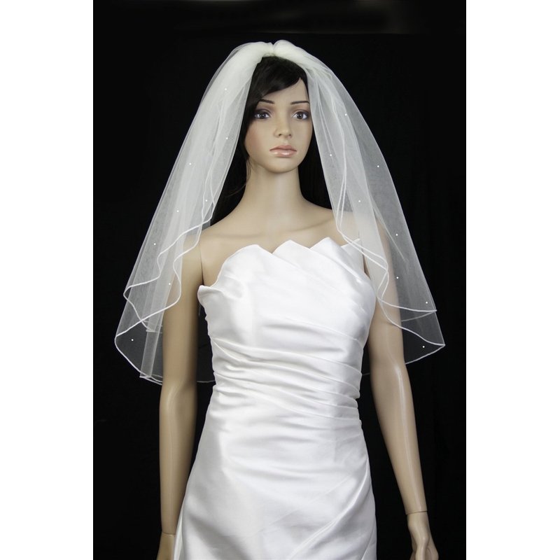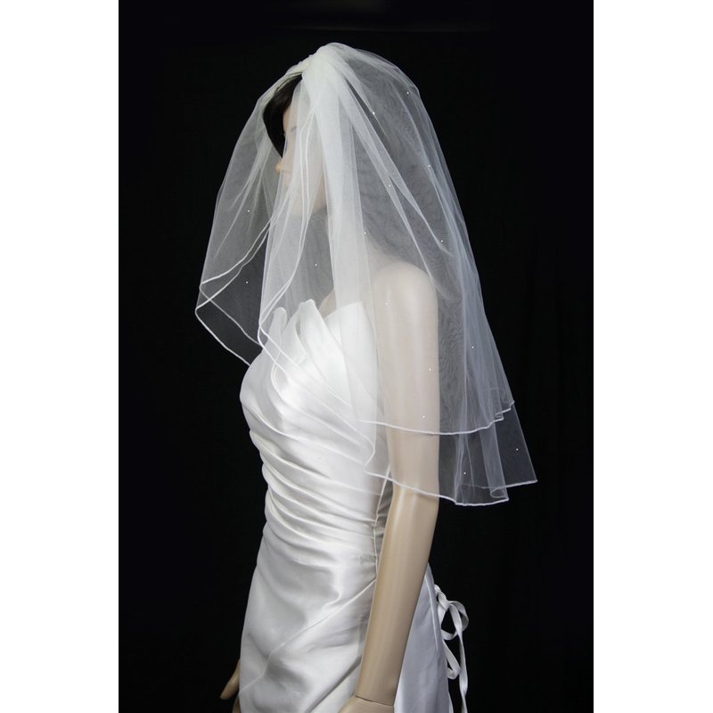 Bridal Veil Ivory 2 Tiers Elbow Length Pencil Edge With Scattered Rhinestones