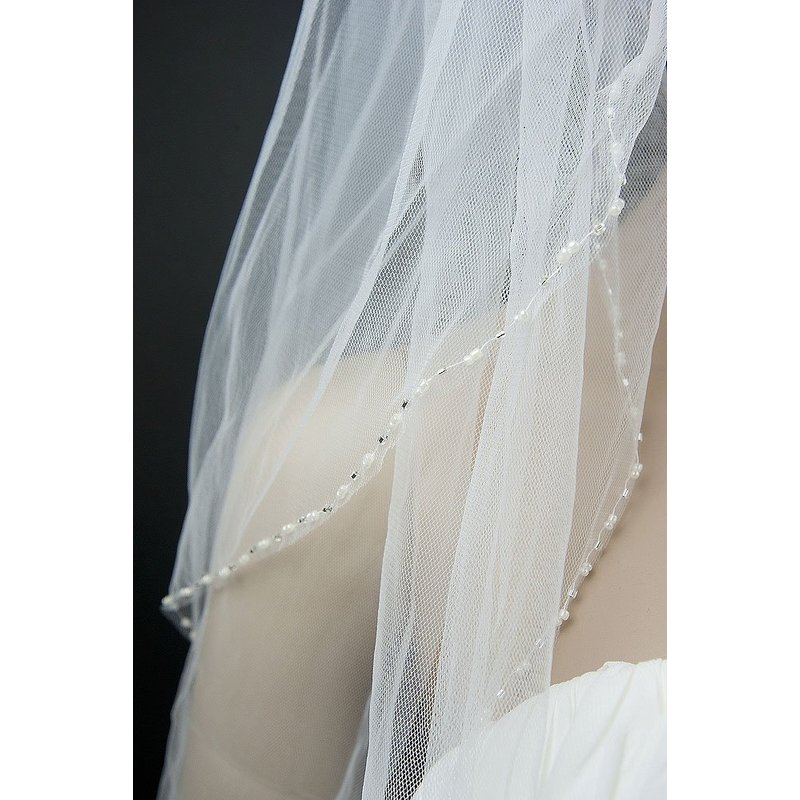 Bridal Veil White 1 Tier Cathedral Length With Clear Bead And Seed Bead on Edge