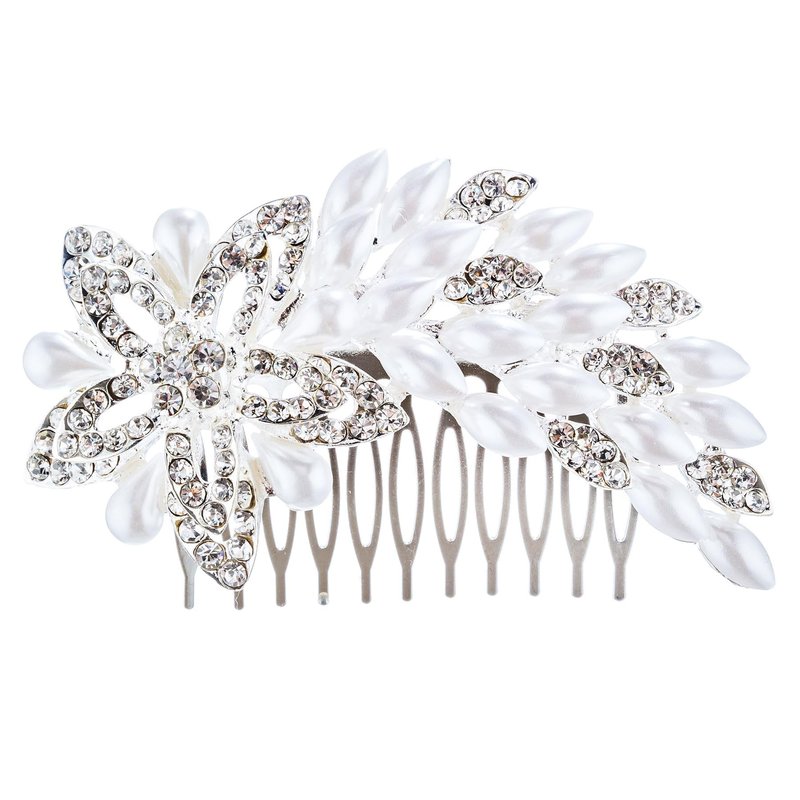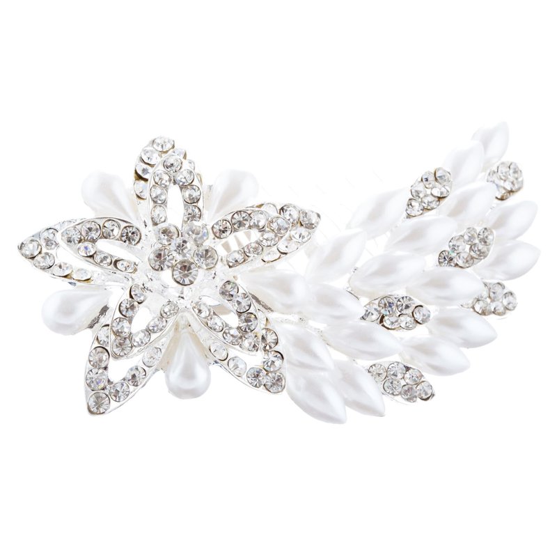 Secure your bridal hairstyle with this enchanting floral hair comb, adorned with pearls and sparkling crystals. Its intricate design adds a touch of dazzling romance to your wedding day look. Versatile and elegant, it's a stunning piece that complements both classic and contemporary bridal styles.