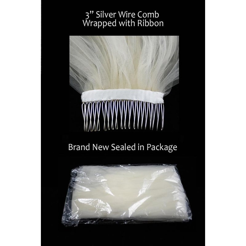 - Comb: Wire comb wrapped in soft ribbon and sewn on. Combs are wrapped in ribbon and sewn on, not glued. Wire comb is more pliable to contour to your head, plastic comb is not. To properly wear your veil, put the ribbon side down, ribbon side should touch your hair