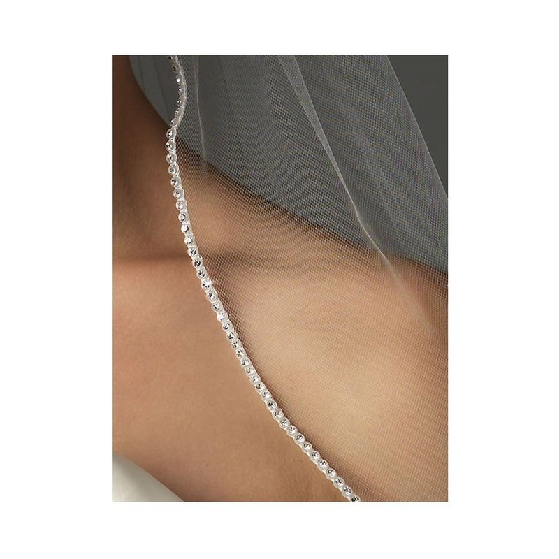 Gorgeous brand new 2 Tiers Fingertip Length veil with 72in width in fullness. The edge is beautifully finished with Rhinestone Edge. Standard cut design, the veil is cut in a soft rounded shape, the edging of the veil runs up the sides and is gathered into the comb. The material is soft and flowing, allowing the veil to drape perfectly.The veil has Silver wire comb attached - wire combs are more pliable and versatile, it can be contoured to your head shape and can be pinned if necessary (as opposed to plastic, which is thicker, inflexible and more cumbersome). Due to variations in computer screen settings, the color may appear differently than the actual color of the veil.Please order our color swatch so you can be confident that you are getting the veil color which matches your dress.