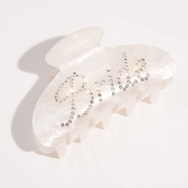 Bride Claw Hair Clip, Aileam White Acrylic Hair Clip Banana Barrettes, Rhinestone Bride Logo, Bachelorette Party Decorations Bridesmaid Gift Shower Wedding