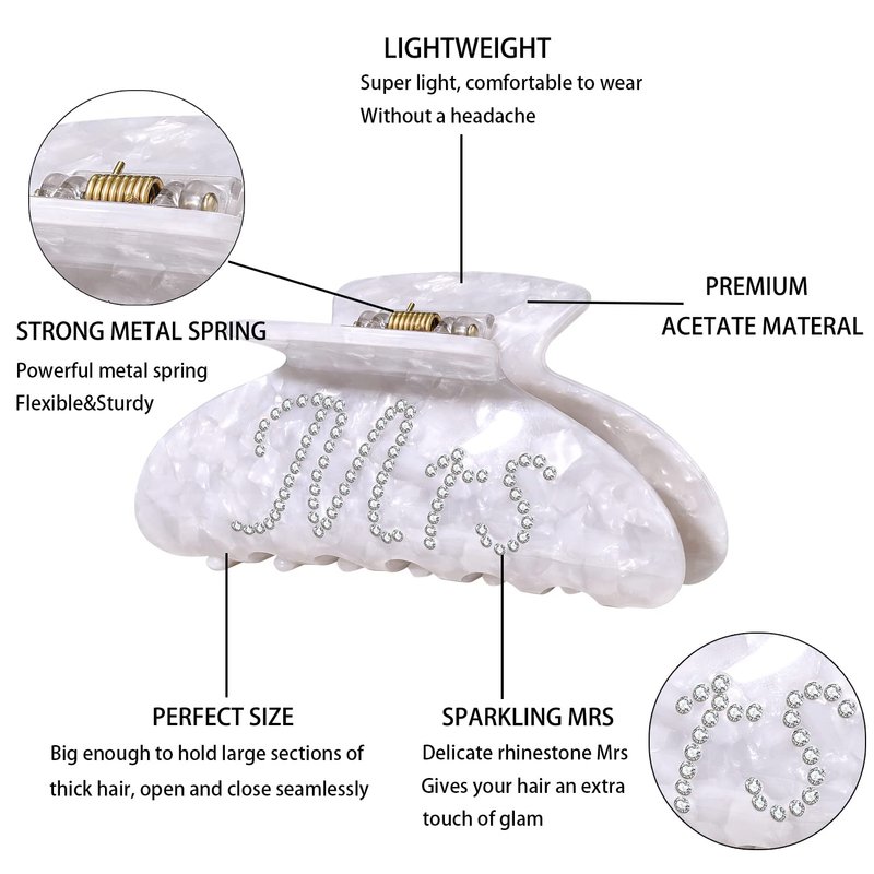 - ♥ Wide Applicable Occasions -- Our rhinestones hair jaw clips are especially suitable for bachelorette parties, wedding gifts, bridal gifts, bridesmaid gifts, party gifts, anniversary gifts, etc.; Whether the bride is your bestie, your sister, or your wife-to-be, show her your love and support with our acrylic hair claw and makes the joy of the moment last