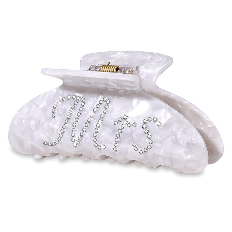 Featuring sparkling rhinestone letter “Bride” on the prettiest pearlescent acrylic Banana Hair Barrettes, it gives your hair an extra touch of glam to finish off your perfect look on your wedding day.