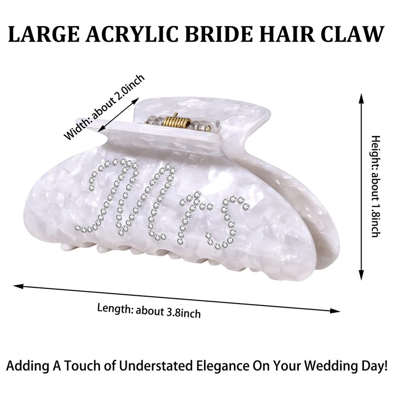 - ♥ Bride Hair Clips -- Celebrate your big day and add a touch of understated elegance with our delicate Bride Hair Claw. Featuring sparkling rhinestone letter “Bride” on the prettiest pearlescent acrylic Banana Hair Barrettes, it gives your hair an extra touch of glam to finish off your perfect look on your wedding day
