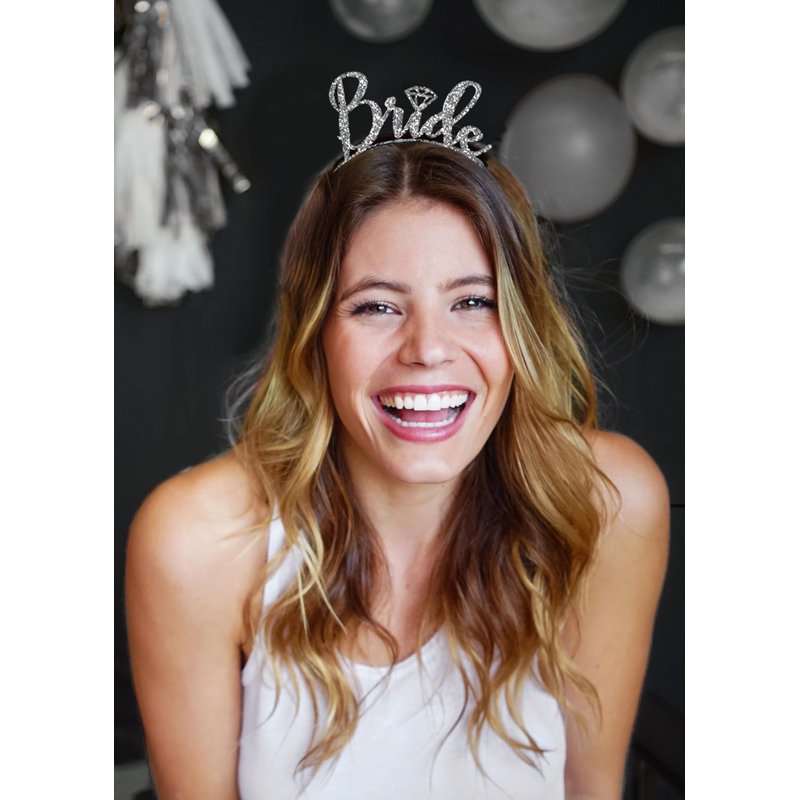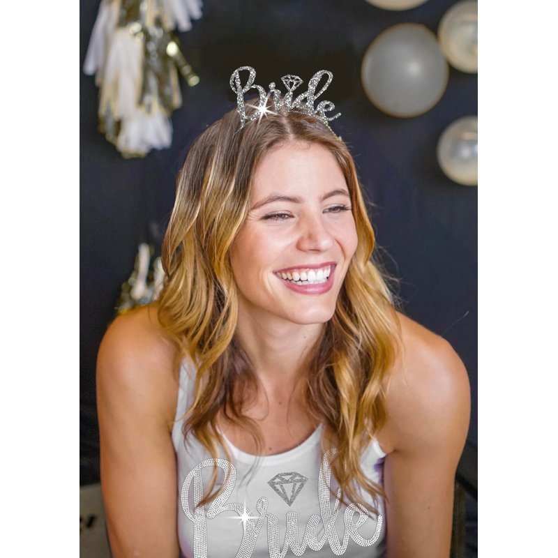 Bride Heaband Tiara - Silver Sparkle Diamond Bride Headband Crown - Bachelorette Party Supplies HdBd(Dmd Bride) SLV