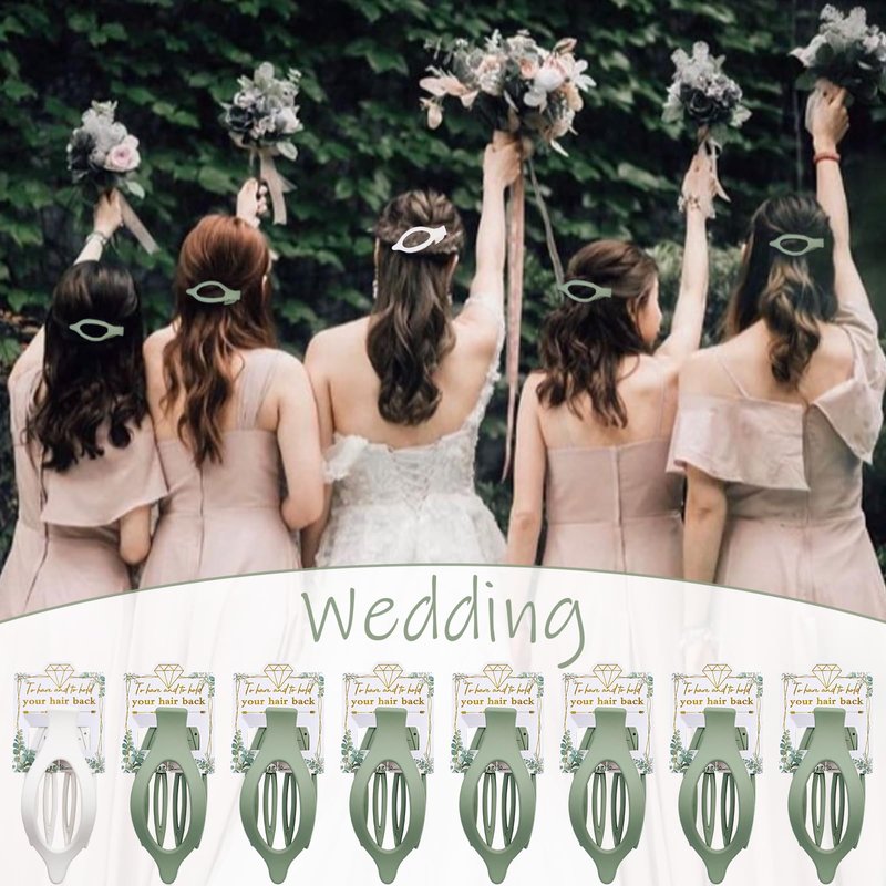 Bridesmaids Hair Clips Claw Bachelorette 8 Pack Bridal Shower Flat Hair Clips Bridesmaid Proposal Gifts for Wedding Bridal Party Favors (White&Sage Green)