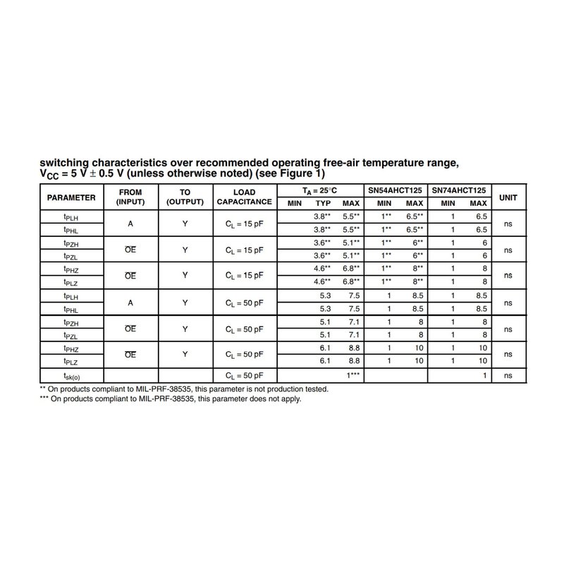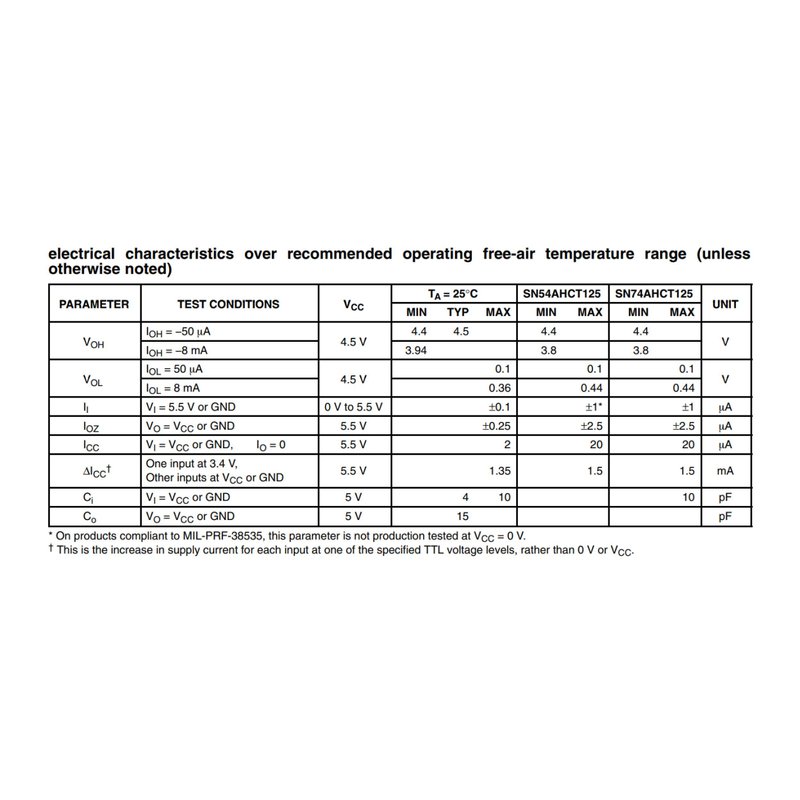 Logic device type: Buffered, non-inverted Minimum power supply voltage: 4.5V Maximum power supply voltage: 5.5V Minimum working temperature: -40°C Maximum working temperature: 85°C Package include: