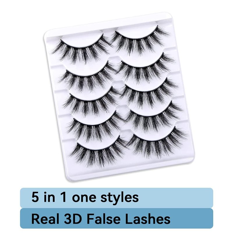 Brieve 18mm 5 Pairs 3D False Eyelashes Pack Fluffy Thick Curled Faux Mink Lashes Strip Lash Natural Look Makeup Tools(3DX05)