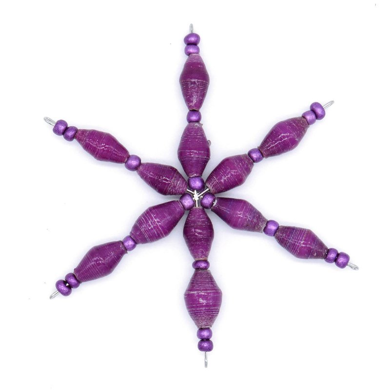 Bright Purple Handmade Beaded Christmas Ornament – Star Design Crafted from Recycled Paper Beads by Outreach Uganda | Unique Eco-Friendly Holiday Decoration for Trees