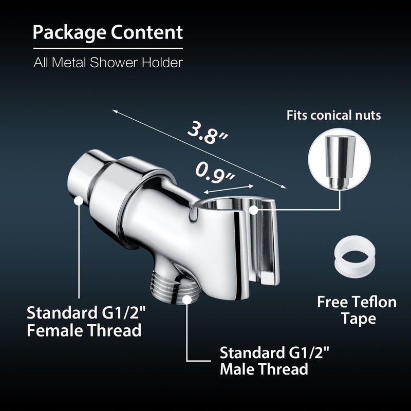 - Angle-Adjustable Shower Arm Holder - The brass pivoting ball offers a 360 degrees of rotation, allows you to adjust the angle of your hand held shower head perfectly and step into a luxurious showering experience