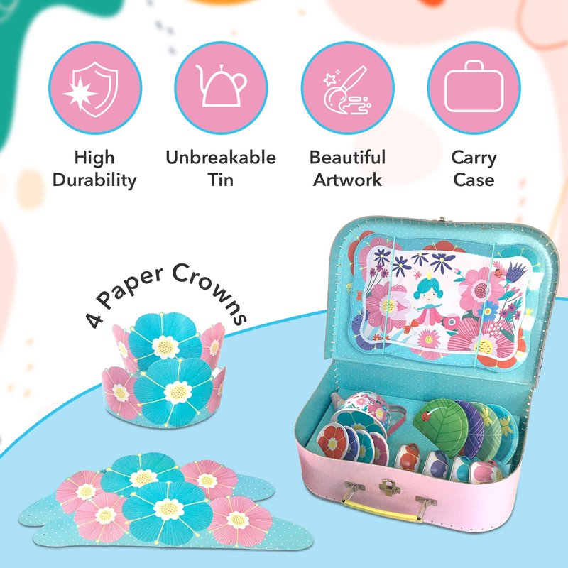 - Versatile Play: Enhance your child's playtime with this versatile Girl Tea Set, ideal for tea parties, picnics, and more. Whether indoors or outdoors, this tea party kids set promises hours of entertainment and fun for both kids and parents alike.